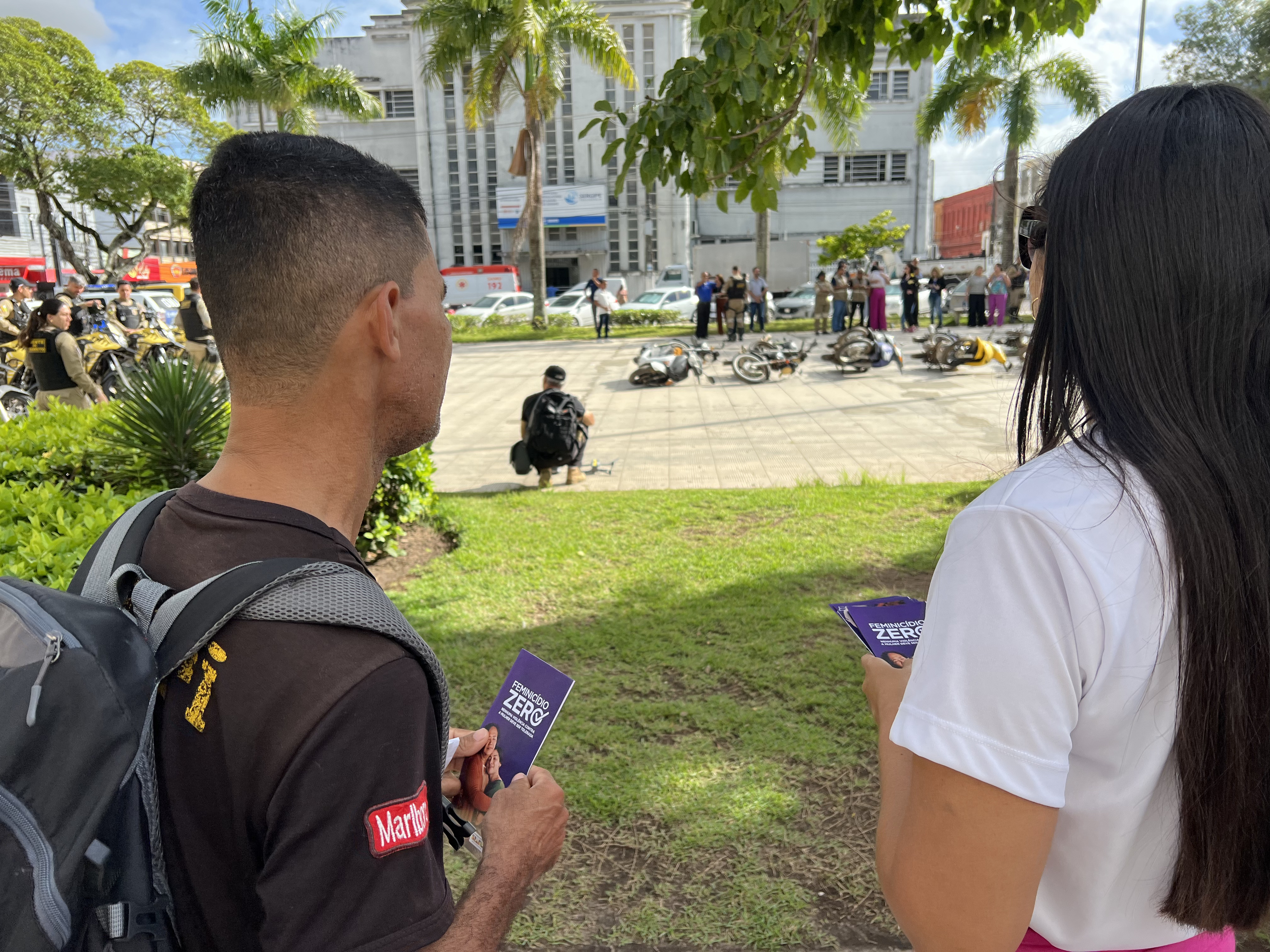 Para que a sociedade e as próprias vítimas compreendam o contexto da violência contra a mulher, o adesivaço também trouxe contextualizações sobre as condutas que são crimes em razão de gênero. “Reforçamos, também, a Lei Maria da Penha. Essas orientações são importantes para que, através da orientação, as mulheres tenham condições de enfrentar a violência e denunciar os casos”, enfatizou a tenente Vitória Silva.