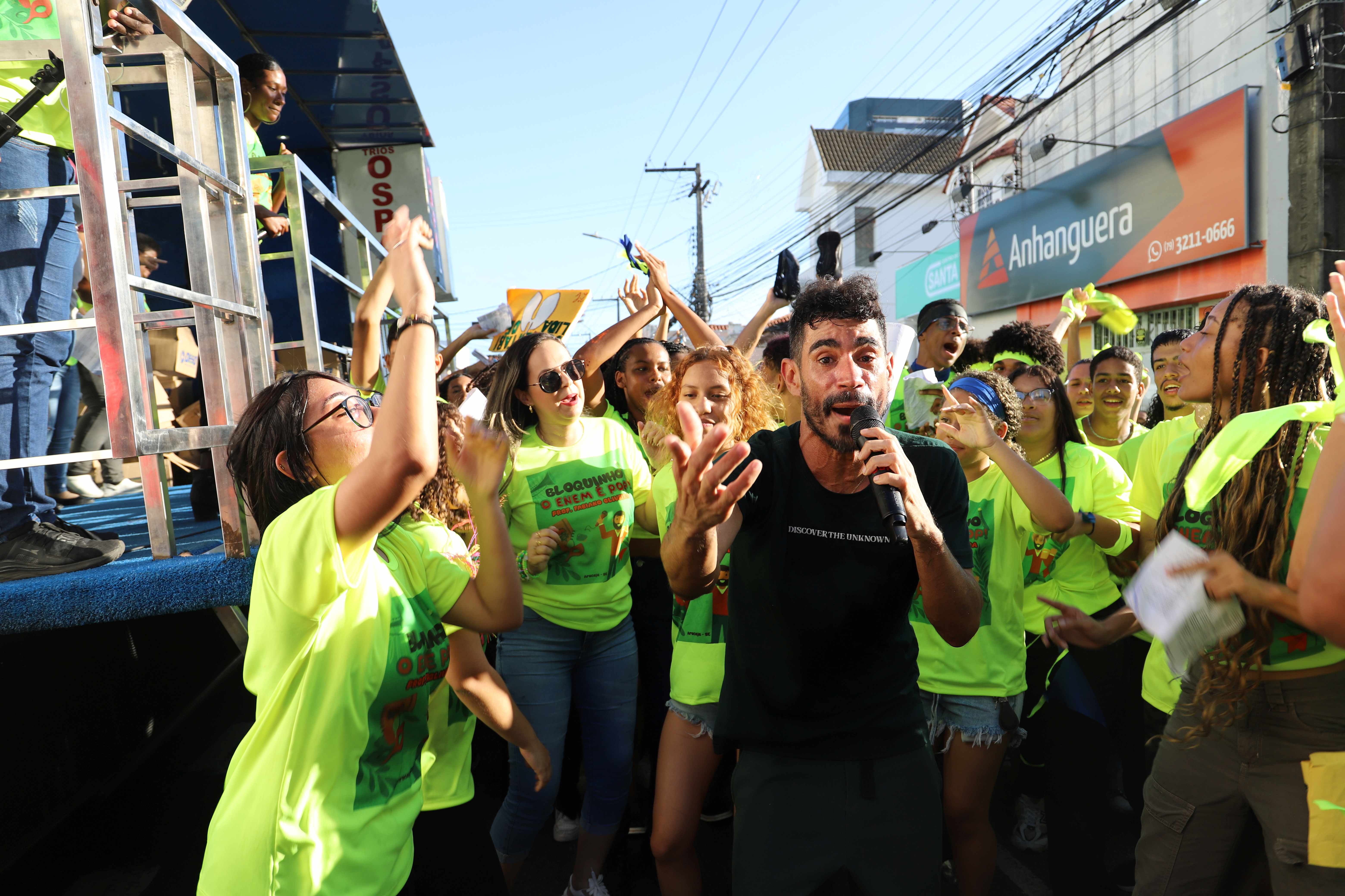 A alegria transbordou os portões da escola pública e tomou conta das ruas do centro de Aracaju, na tarde desta terça-feira, 1º de outubro, quando foi realizado o desfile do ‘Bloquinho do Enem’. A segunda edição do primeiro bloco exclusivo para inscritos no Exame Nacional do Ensino Médio (Enem) contou com a participação de centenas de alunos do Centro de Excelência Dom Luciano José Cabral Duarte, do Centro de Excelência Professor Gonçalo Rollemberg Leite, ambos situados na capital, e do Centro de Excelência Emeliano Ribeiro, da cidade de São Domingos.