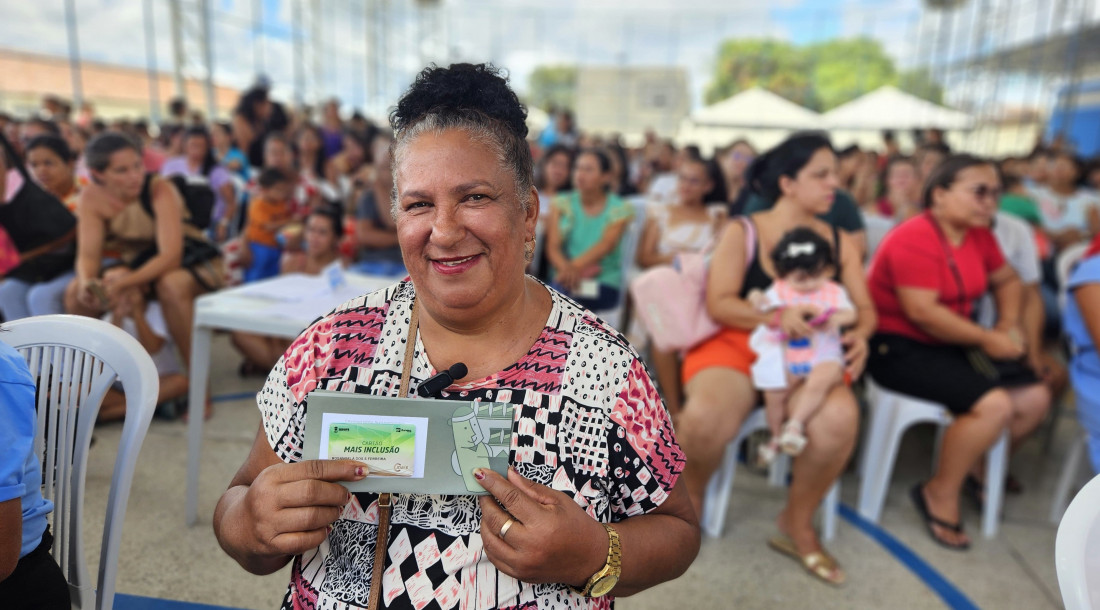 Entre os contemplados está a dona Rosangela Ferreira, lavradora, que recebeu o cartão CMais Cidadania. “Chegou em boa hora. Usarei o cartão para as compras do mês de alimentos para a minha família”, relata a beneficiária.
