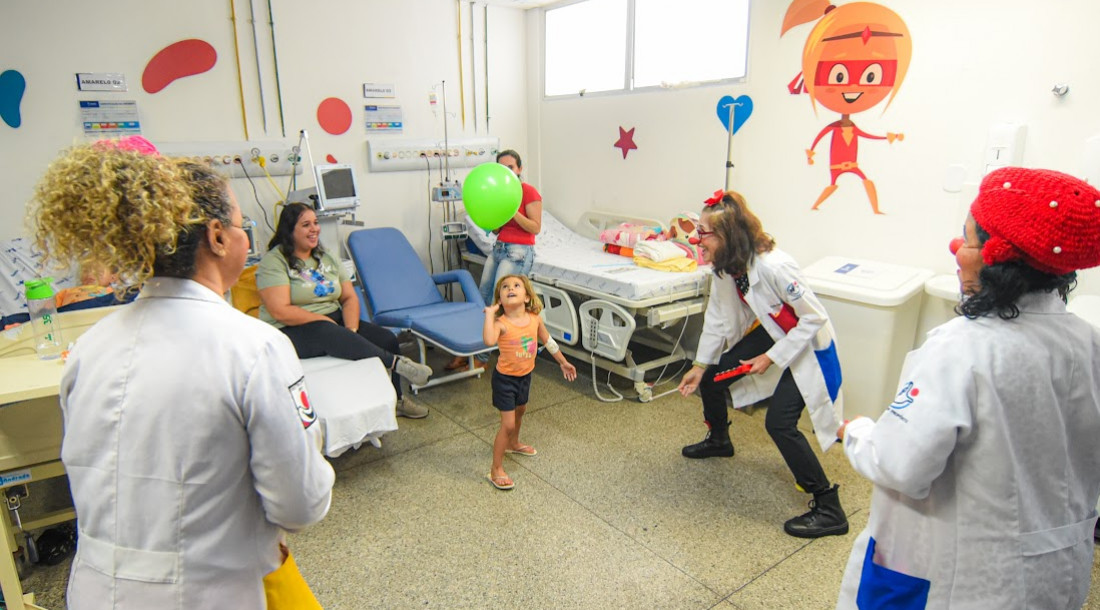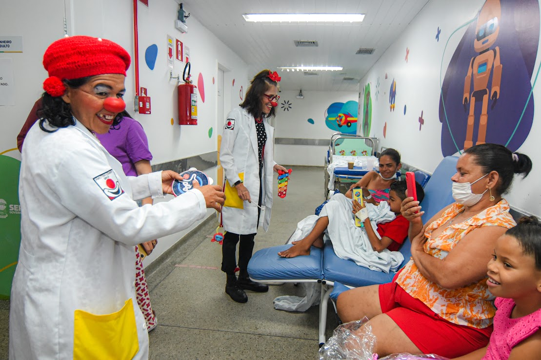 A visita dos Palhaços de Propósito nas enfermarias e Pronto-Socorro da Unidade Pediátrica aconteceu na última segunda-feira, 6, e foi a primeira de uma série de ações da programação especial alusiva ao Dia das Crianças, voltada aos pacientes pediátricos internados na unidade hospitalar. “Foi tudo preparado com muito carinho porque sabemos que estas iniciativas fazem a diferença no tratamento e auxiliam na recuperação dos pacientes”, enfatizou a gerente do Internamento Pediátrico, Valquíria Barros.