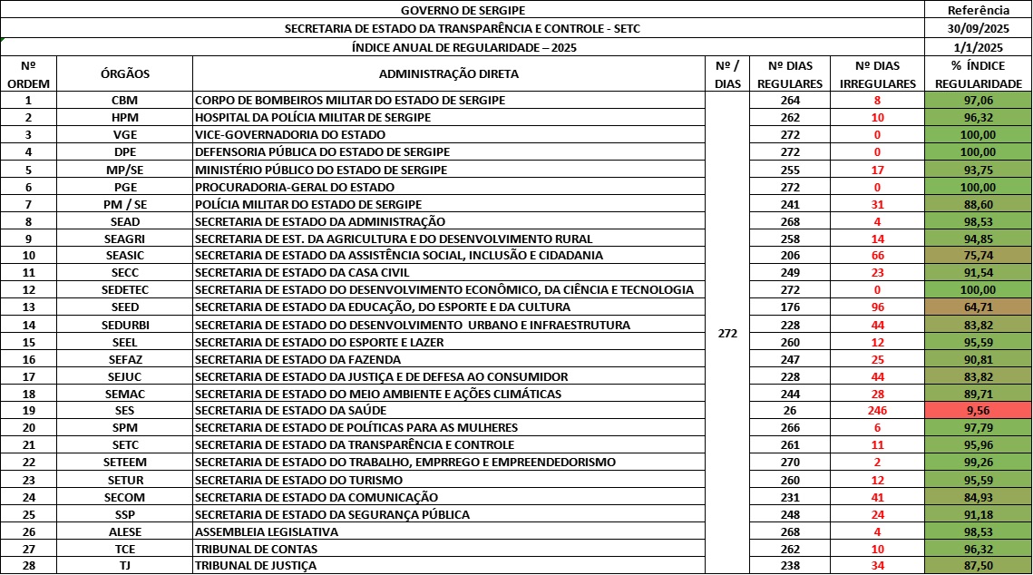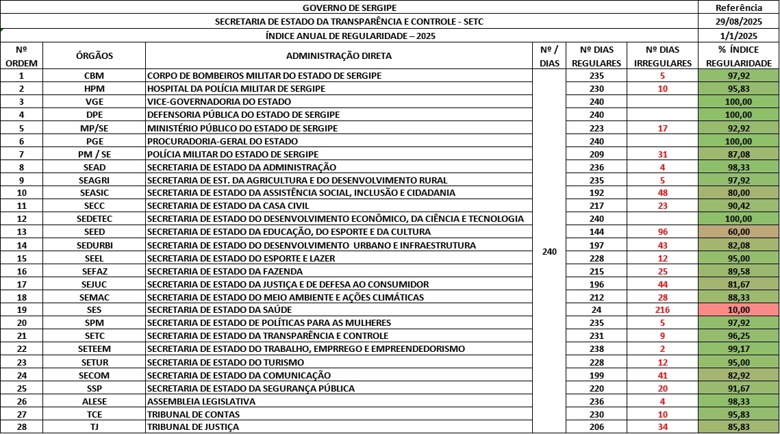 Índice de Regularidade dos Órgãos - Adm direta